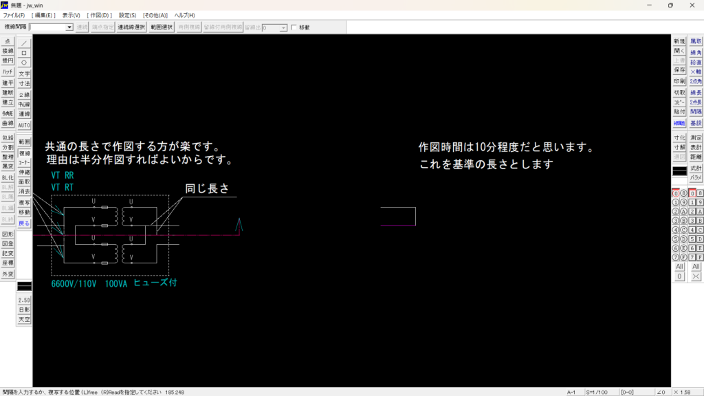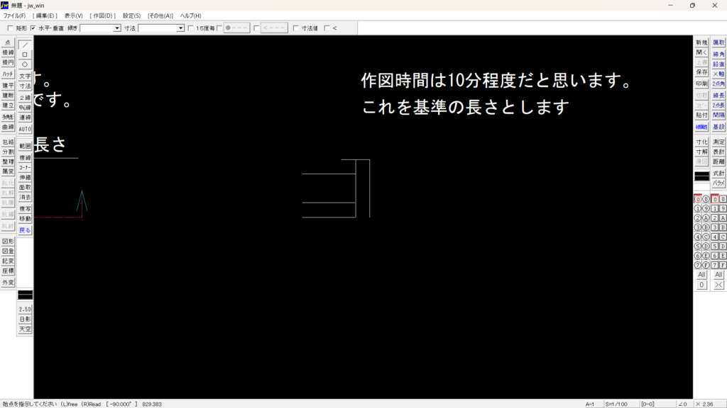 今回の作図は、10分以内に作図できるという目標で頑張ってみてください。